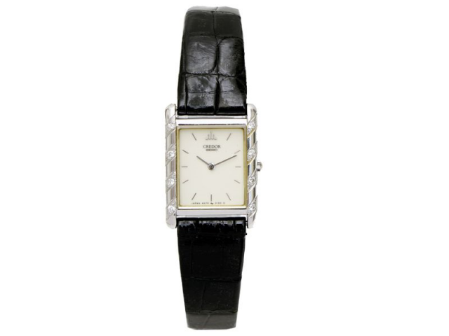 セイコー 4N70-5020 クレドール K18WG/革 ダイヤベゼル クォーツ レディース
