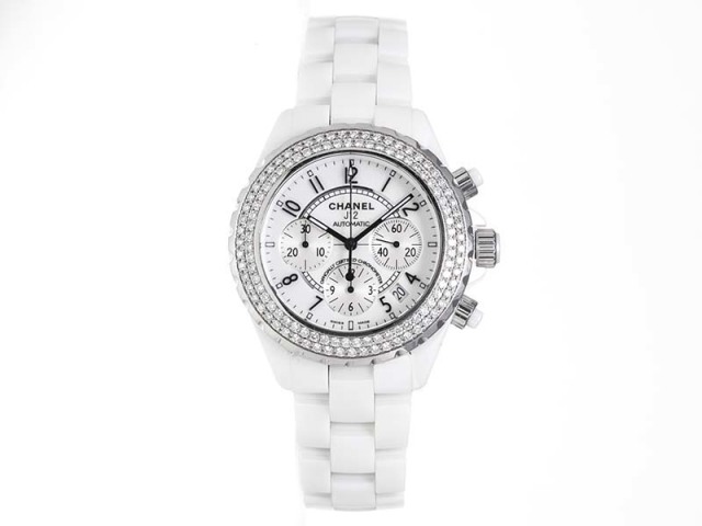 シャネル】J12 純正ダイヤベゼル H1008 自動巻 クロノグラフ 白セラミック/SS デイト メンズ