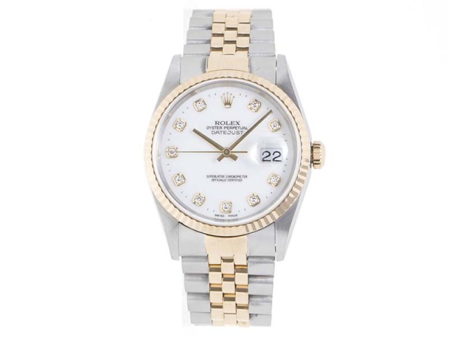 ロレックス 16233G デイトジャスト U番 新10Pダイヤ K18YG/SS 白文字盤 自動巻 メンズ