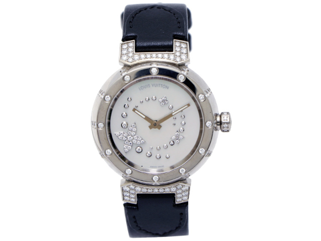 ルイヴィトン Q131H タンブール K18WG/革 純正ダイヤ クォーツ レディース