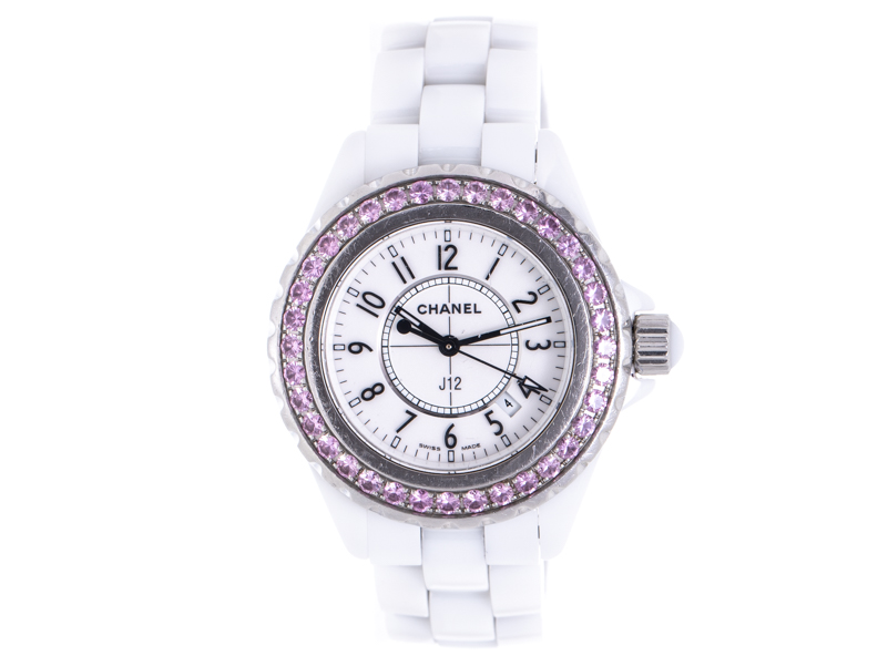 シャネル H1181 J12 サファイアベゼル セラミック/SS デイト クォ―ツ レディース 特価