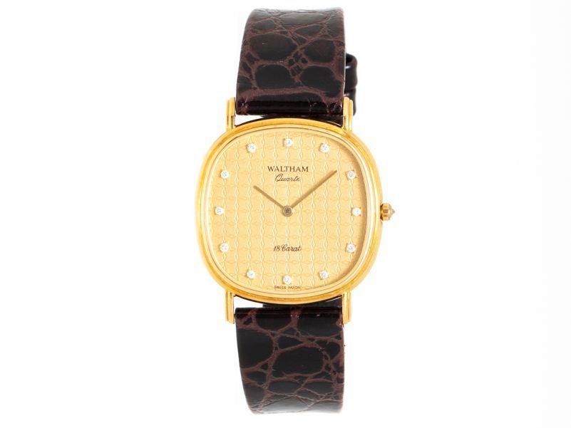 WALTHAM ウォルサム K18YG/革 12Pダイヤ クォーツ ゴールド文字盤 ボーイズ  特価