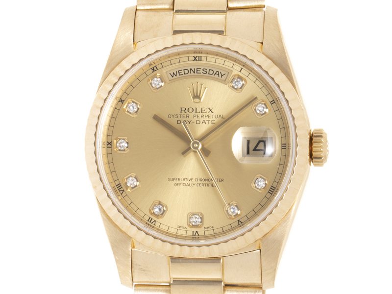 【ROLEX ロレックス】18238G デイデイト K18YG 10Pダイヤ 自動巻 A番 1998年~1999年製 メンズ 中古・ブランド品の販売・買取・質屋・通販なら一平堂におまかせください。