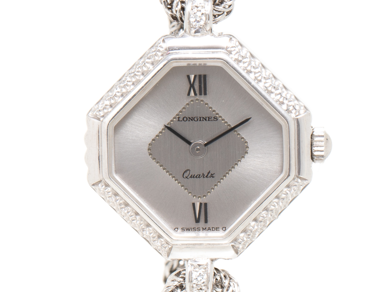 【LONGINES ロンジン】K18WG クォーツ チェーンブレスレット アンティーク シルバー文字盤 レディース 中古・ブランド品の販売・買取・質屋・通販なら一平堂におまかせください。