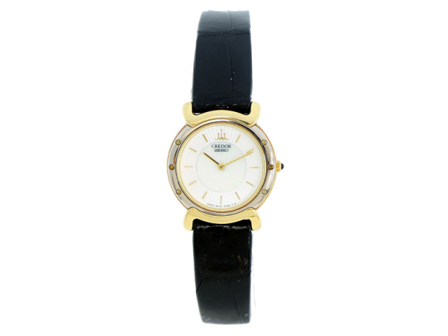 【SEIKO セイコー】 5A70-0B00 クレドール K18/革 クォーツ レディース