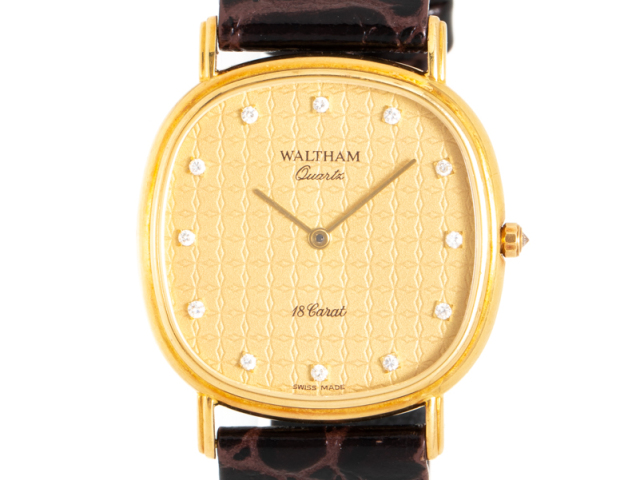 【WALTHAM ウォルサム】K18YG/革 12Pダイヤ クォーツ ゴールド文字盤