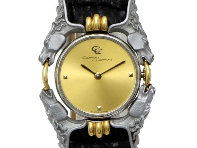 【Carrera y Carrera カレライカレラ】115 カバロス K18YG/SS/革 クォ―ツ ゴールド文字盤