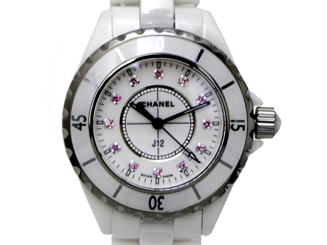 【CHANEL シャネル】H1476 J12 ホワイトセラミック 12Pピンクサファイア 33mm デイト