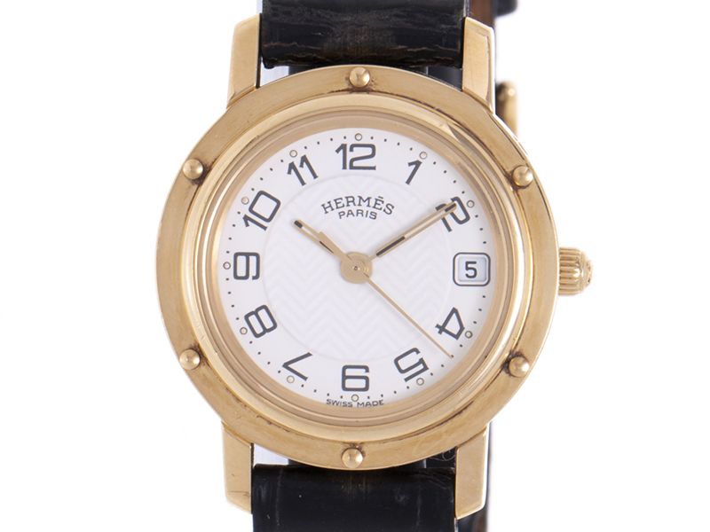 【HERMES エルメス】CL4.285 クリッパー K18YG/革 クォーツ ホワイト文字盤 デイト レディース 中古・ブランド品の販売・買取・質屋・通販なら一平堂におまかせください。