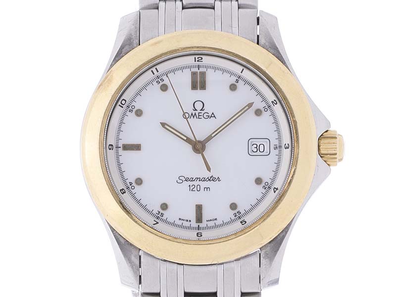 【OMEGA オメガ】シーマスター120 クォーツ K18YG/SS デイト 白文字盤 メンズ 中古