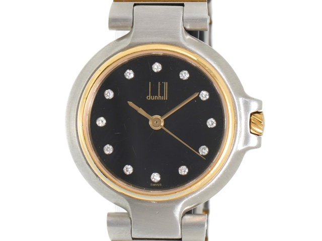 【dunhill ダンヒル】ミレニアム GP/SS 12Pダイヤ クォーツ ブラック文字盤