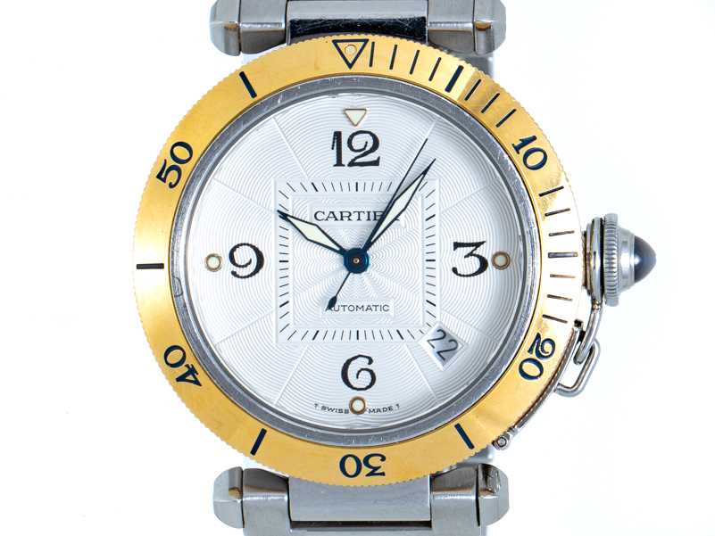 【Cartier カルティエ】W310355T6 パシャ38mm K18YG/SS ギョーシェ文字盤 自動巻 裏スケ デイト メンズ 中古・価格破壊・ブランド品の販売・買取・質屋・通販なら一平堂におまかせください。