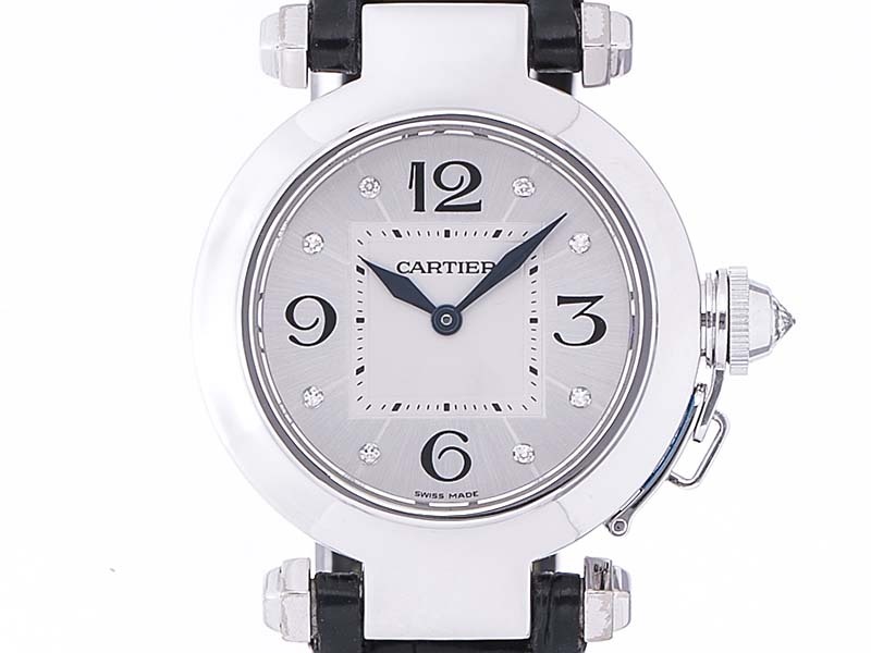 【Cartier カルティエ】 WJ11902G パシャ32MM K18WG/革 クォーツ 8Pダイヤ レディース 中古・価格破壊・ブランド品の販売・買取・質屋・通販なら一平堂におまかせください。