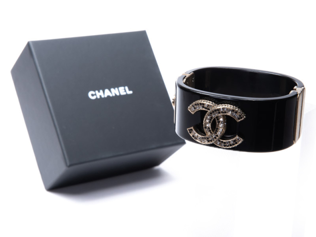 【CHANEL シャネル】ココマーク バングル ラインストーン ブラック ブレスレット レディース