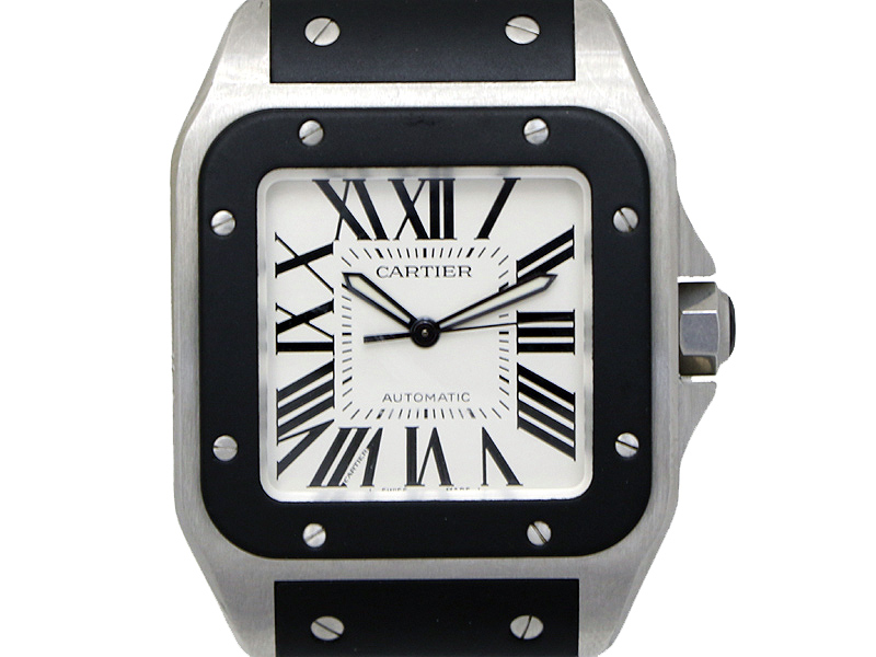 【Cartier カルティエ】W2012U2 サントス100LM SS/ラバー 自動巻 メンズ