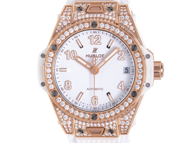 【HUBLOT ウブロ】465.OE.2080 ビッグバン ワンクリック キングゴールド K18PG/ラバー 純正ダイヤ デイト レディース