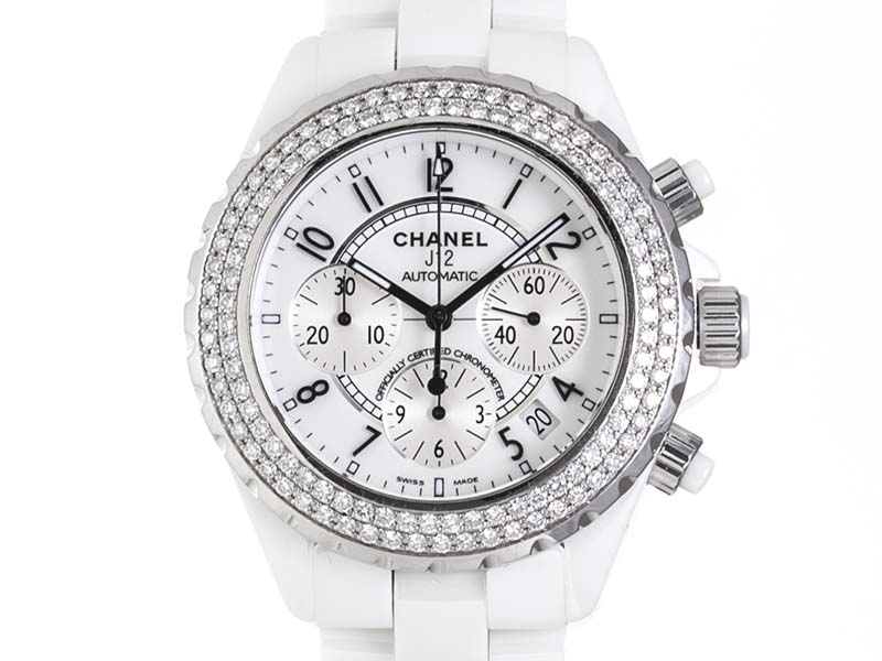 【CHANEL シャネル】J12 純正ダイヤベゼル H1008 自動巻 クロノグラフ 白セラミック/SS デイト メンズ