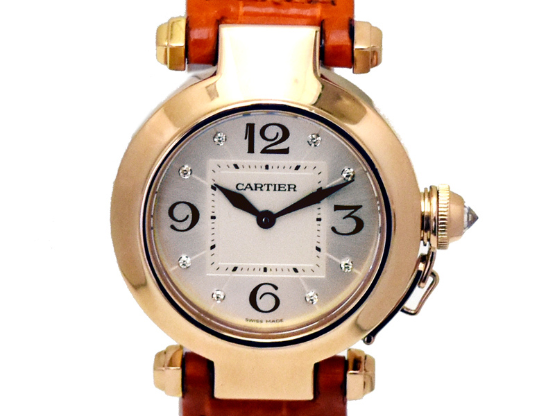 【CARTIER カルティエ】WJ11913G パシャ32mm 8Pダイヤ K18PG/革 クォーツ レディース
