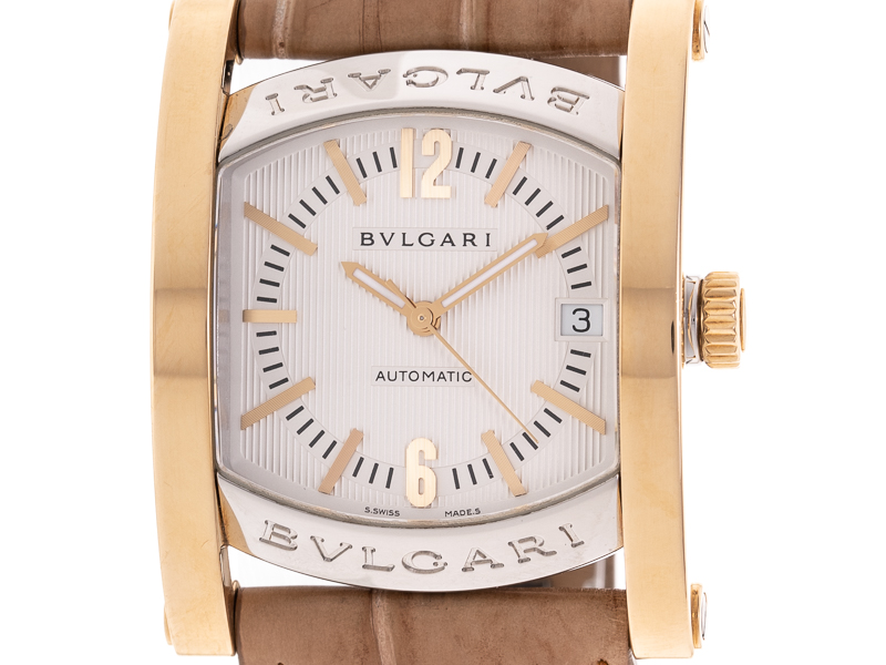 【BVLGARI ブルガリ】AA44SG アショーマ SS/K18YG/革 自動巻 コンビ シルバー文字盤 デイト メンズ