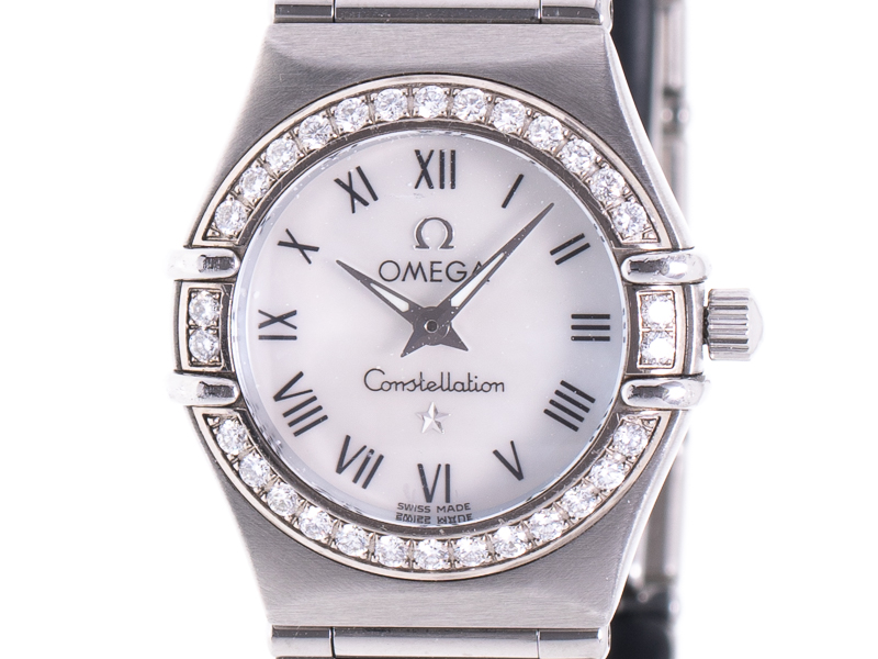 【OMEGA オメガ】コンステレーションミニ ダイヤベゼル SS シェル文字盤 クォ―ツ レディース