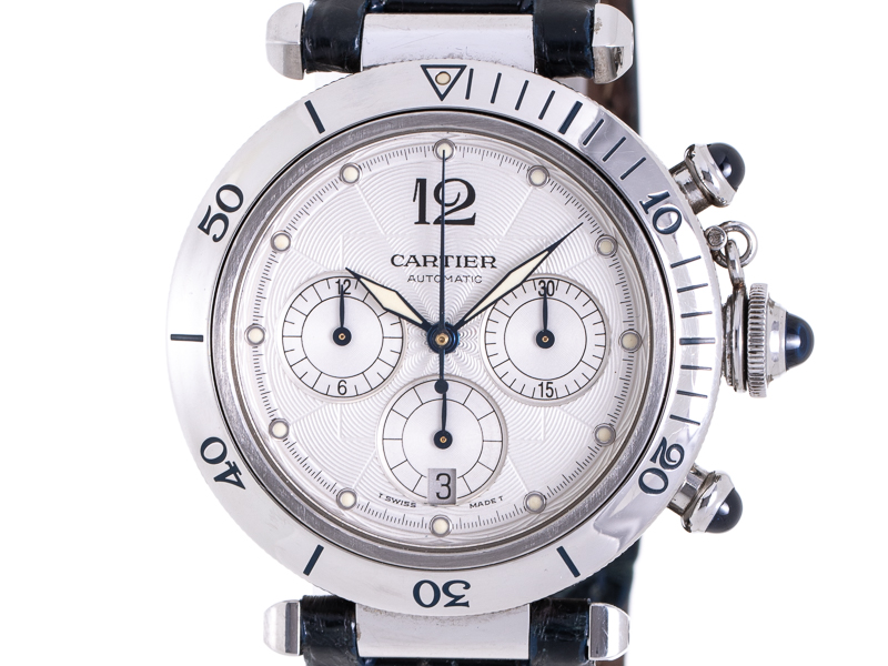 【CARTIER カルティエ】パシャ38mm クロノグラフ W3103055 自動巻 SS/革 裏スケ デイト メンズ