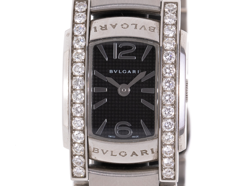 【BVLGARI ブルガリ】AA26S アショーマD SS ダイヤベゼル クォーツ 黒文字盤 レディース