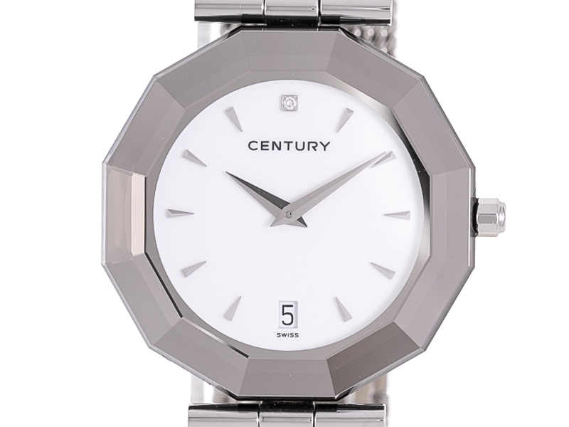 【Century センチュリー】タイムジェム 1Pダイヤ SS 白文字盤 クォーツ メンズ