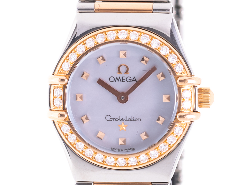 【OMEGA オメガ】1368.74 コンステレーションミニ マイチョイス ダイヤベゼル K18PG/SS シェル クォ―ツ レディース