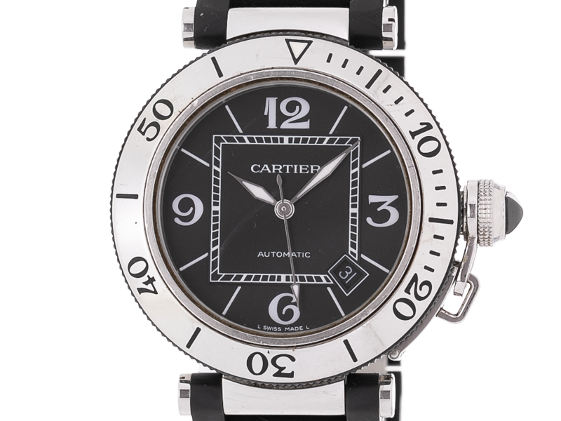 【Cartier カルティエ】W31077U2 パシャ シータイマー 黒文字盤 自動巻 SS/ラバー デイト メンズ