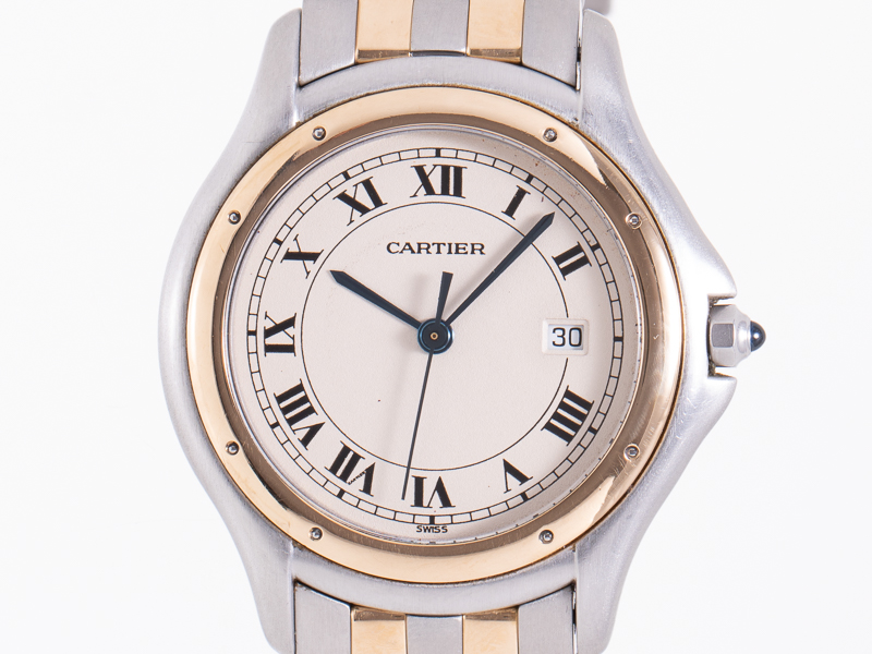 【Cartier カルティエ】 パンテール クーガ 2ロウ K18YG/SS クォーツ アイボリー文字盤 デイト メンズ