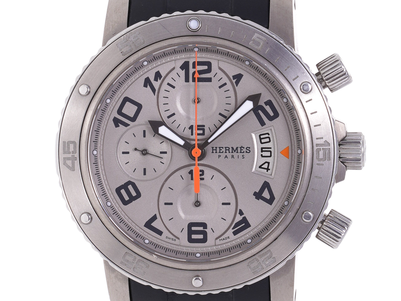 【HERMES エルメス】CP2.941 クリッパーダイバー クロノ チタン+ラバーベルト 自動巻 デイト 裏スケ メンズ
