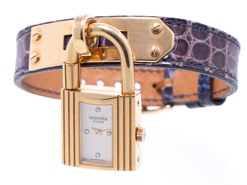 【HERMES エルメス】ケリー K18(イエローゴールド)/革 クォ―ツ 〇X刻 ダイヤ4P レディース