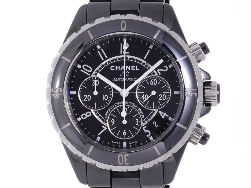 【CHANEL シャネル】J12 H0940 黒セラミック CE/SS クロノグラフ デイト 自動巻 メンズ