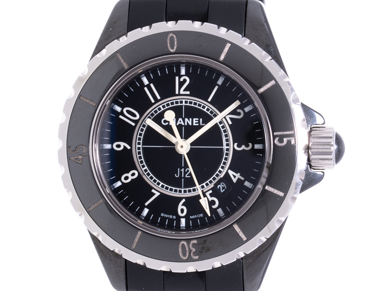 【CHANEL シャネル】J12 H0681 ブラックセラミック CE/ラバー デイト クォーツ レディース