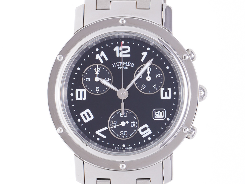 【HERMES エルメス】 CL1.910 クリッパー クロノグラフ SS クォ―ツ デイト メンズ