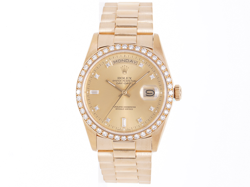 【ROLEX ロレックス】18348A デイデイト ダイヤベゼル 10Pダイヤ K18YG L番 1989年製 自動巻 メンズ