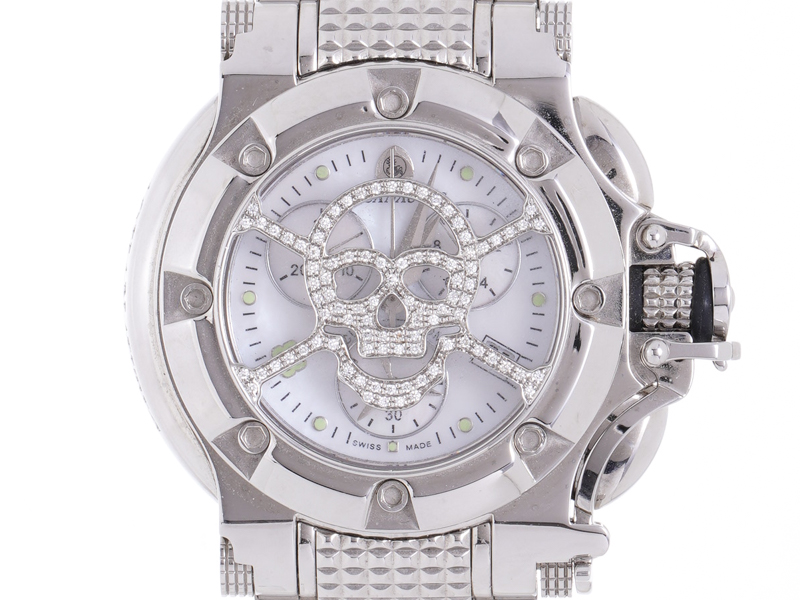 【AQUANAUTIC アクアノウティック】バラクーダ スカルマスク 純正ダイヤ SS/シェル クロノグラフ デイト レディース