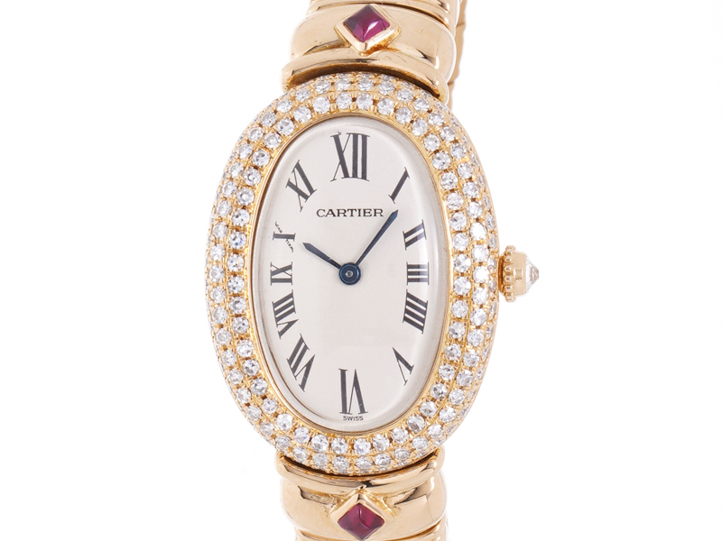 【CARTIER カルティエ】ベニュワール 純正ダイヤベゼル/アフタールビーブレス K18YG 無垢 クォーツ レディース