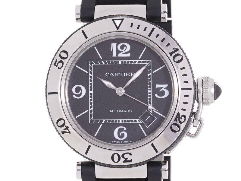 【Cartier カルティエ】W31077U2 パシャ シータイマー SS/ラバー 黒文字盤 自動巻 デイト メンズ