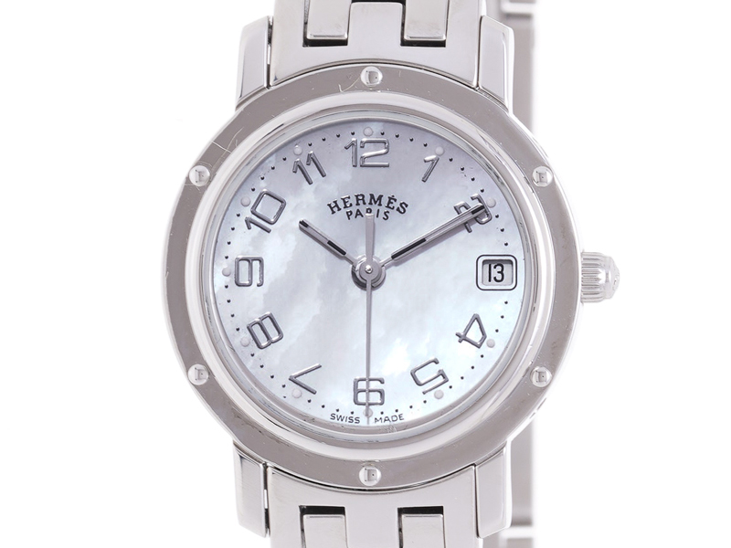 【HERMES エルメス】CL4.210.214 クリッパーナクレ SS クォ―ツ ピンクシェル デイト レディース