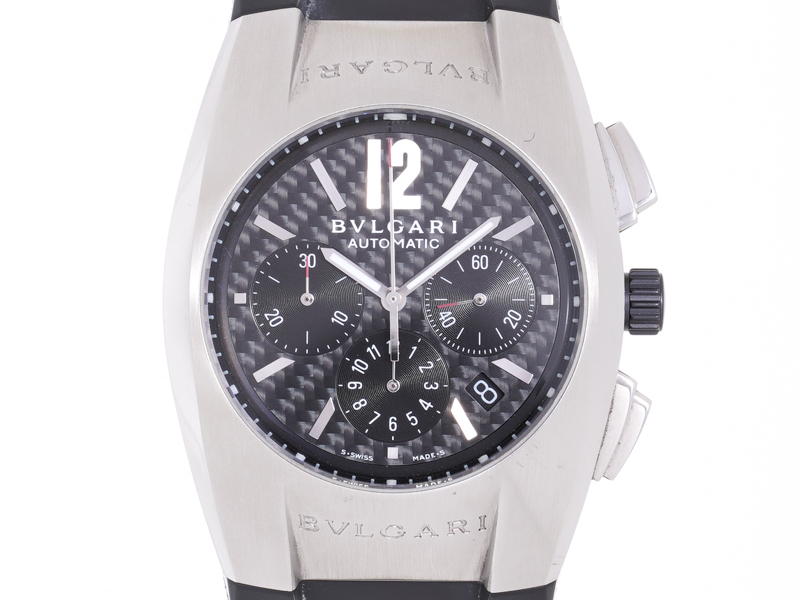 【BVLGARI ブルガリ】EG40SCH エルゴンクロノ ブラックカーボンダイヤル SS/ラバー 自動巻 デイト メンズ