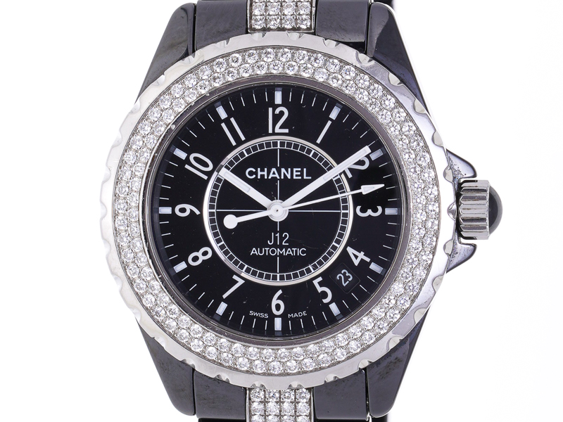 【CHANEL シャネル】J12 H1339 純正ダイヤベゼル ブレスレット 自動巻 黒セラミック/SS デイト メンズ