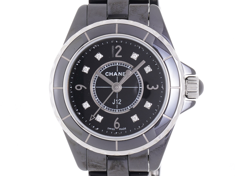 【CHANEL シャネル】 J12 H2569 黒セラミック 純正ダイヤ 29mm CE/SS デイト クォーツ レディース