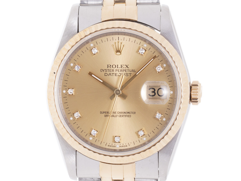 【ROLEX ロレックス】16233G デイトジャスト 自動巻 K18YG/SS 10Pダイヤ DATEJUST S番 メンズ