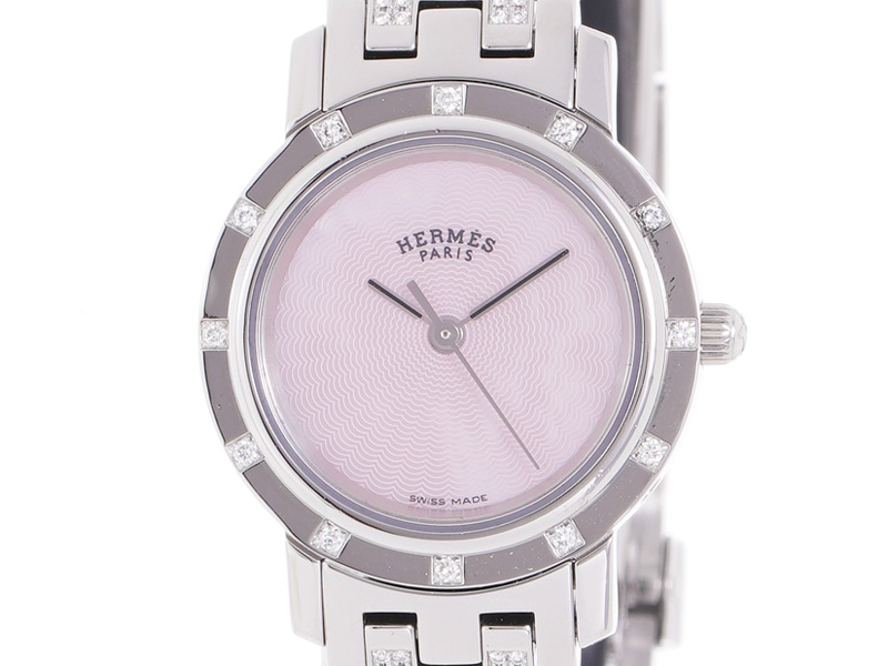 【HERMES エルメス】CL4.230 クリッパーナクレ パヴェダイヤ SS シェル デイト クォ―ツ レディース