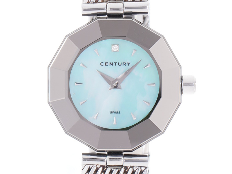 【Century センチュリー】タイムジェム 1Pダイヤ ブルーシェル SS クォーツ レディース