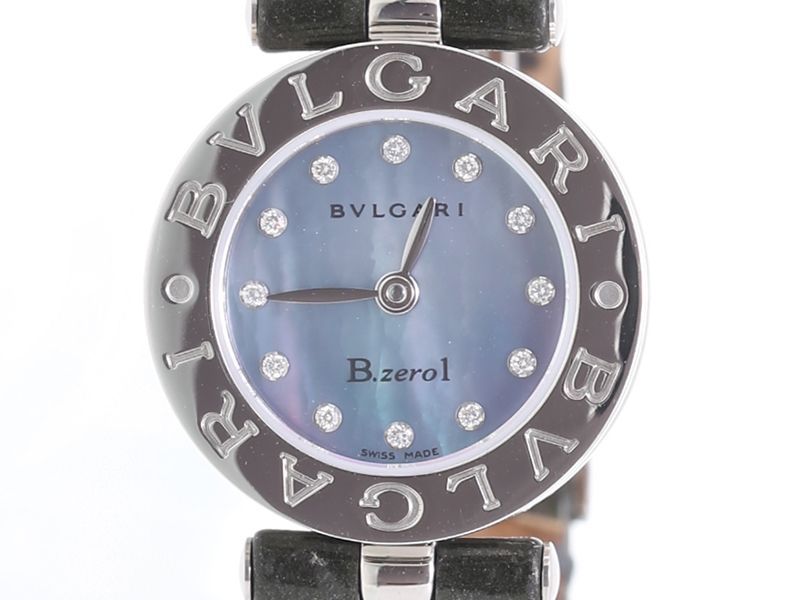 【BVLGARI ブルガリ】BZ22S Bzero1 ビーゼロワン ブルーシェル SS/革 12Pダイヤ クォーツ レディース