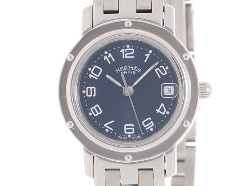【HERMES エルメス】CL4.210 クリッパー SS クォ―ツ ブルー文字盤 デイト レディース