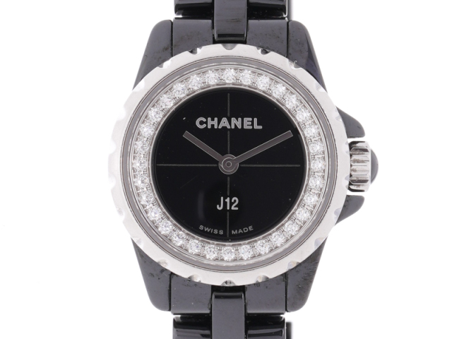 【CHANEL シャネル】J12 H5235 黒セラミック XS クォーツ ダイヤベゼル レディース