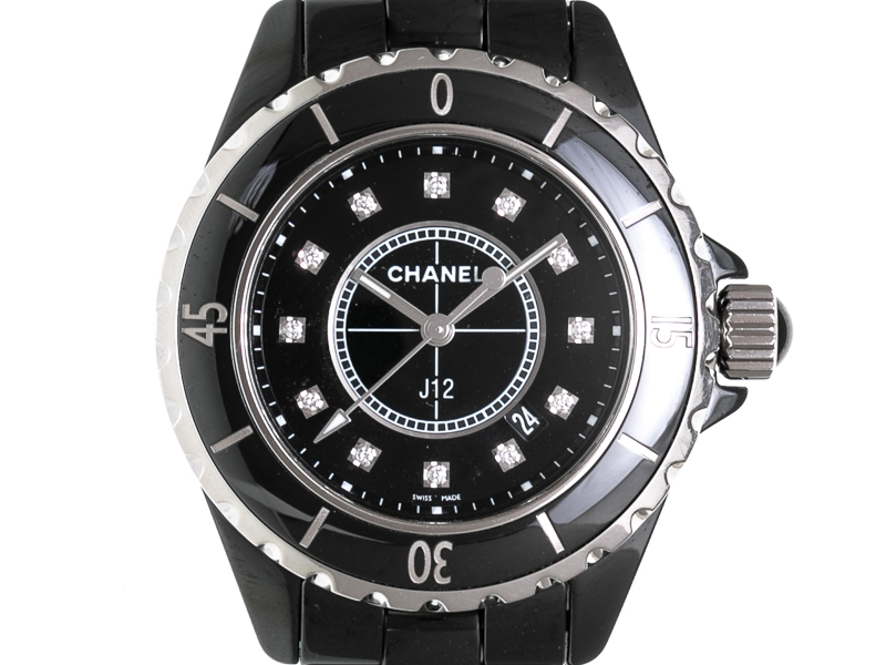 【CHANEL シャネル】H1625 J12 12Pダイヤ クォーツ 黒セラミック デイト レディース